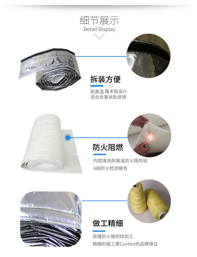 Covhot自粘式保溫帶產(chǎn)品作為方便拆卸的保溫隔熱產(chǎn)品,具有耐高溫、導熱系數(shù)低、耐酸堿、防火阻燃能力。